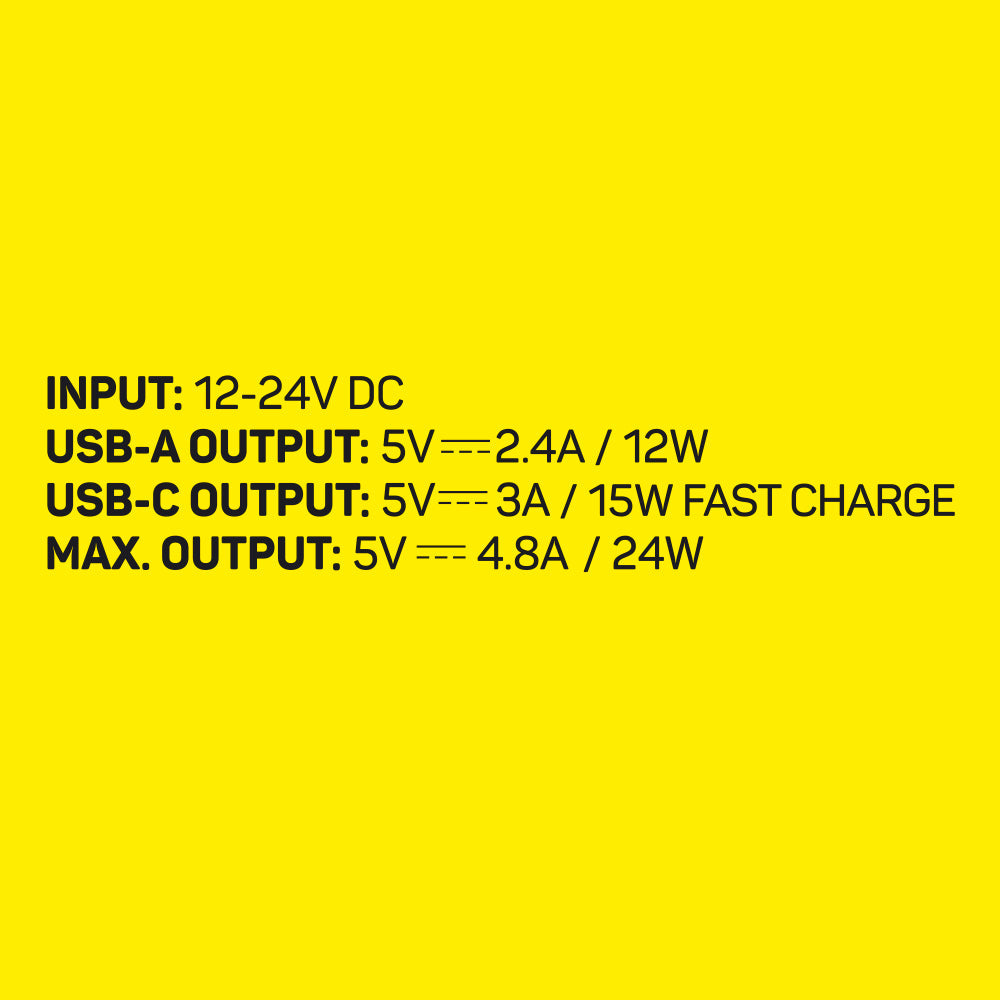 - Dual Charging Ports – Includes a 12W (2.4A) USB-A port and a 15W (3A) USB-C port for charging two devices simultaneously.
