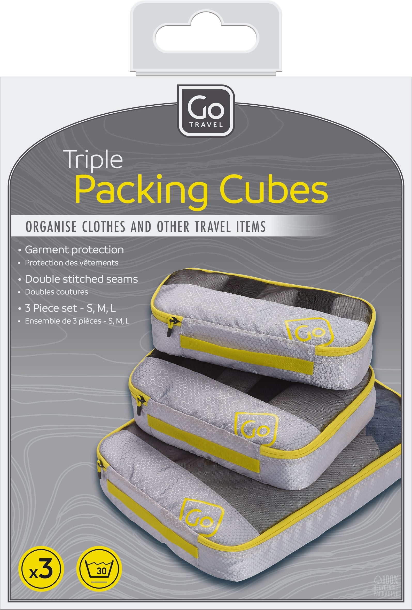 Take the stress out of packing and turn it into a perfectly organized experience with the Go Travel Triple Packing Cubes in bold yellow. Designed with smart features and a stylish finish, these cubes bring order, visibility, and versatility to every trip.